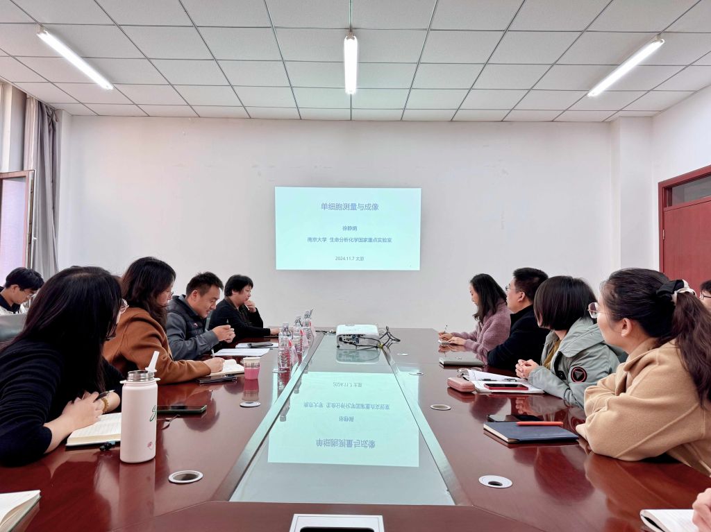 2024年11月7日上午,南京大学化学化工学院生命分析化学国家重点实验室教授、国家杰出青年科学基金获得者、教育部长江学者特聘教授徐静娟应李晓春教授邀请到kaiyun体育官方网站入口登录交流,并作题为“单细胞测量与成像”的学术报告。报告由魏明强院长主持,学院部分师生参加了此次学术报告会。