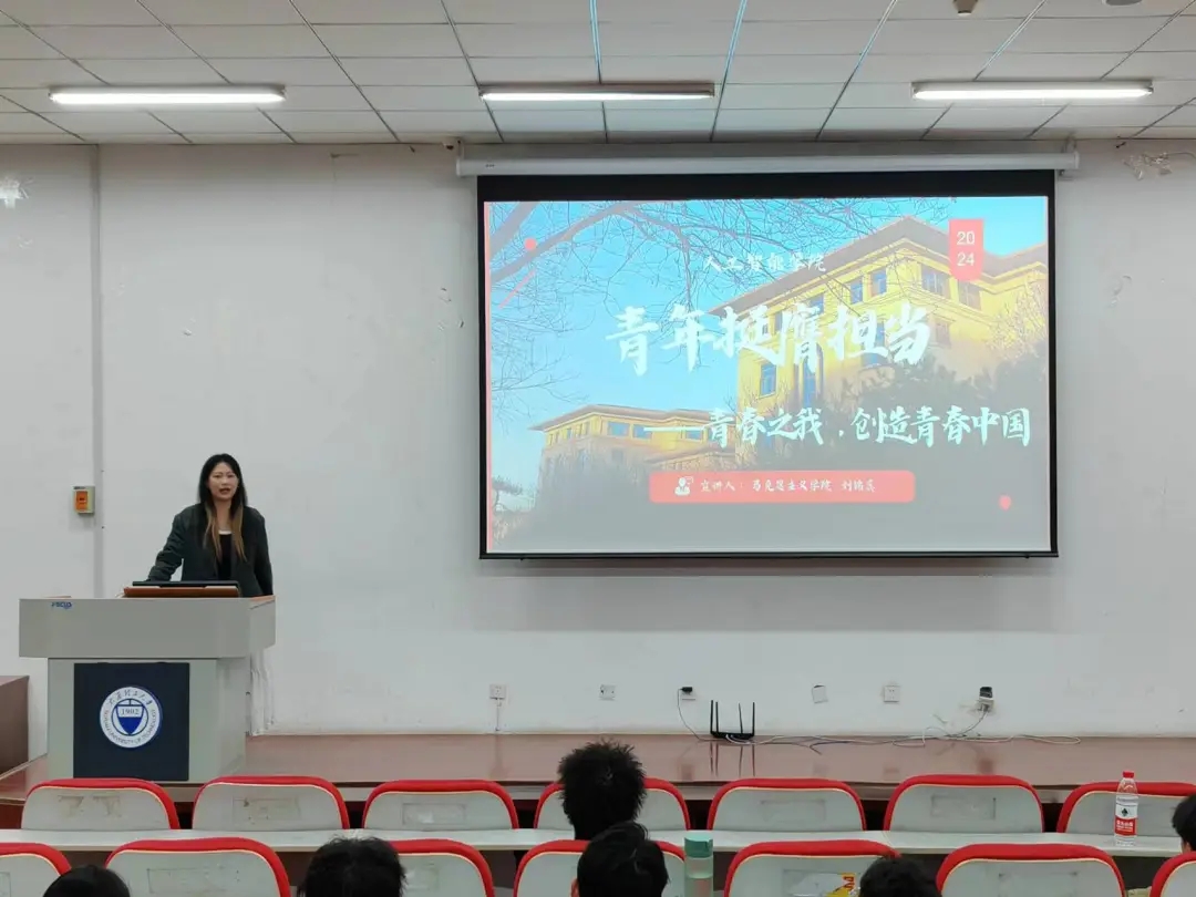 研究生支教团成员刘铭蕊同学以“青春之我,创造青春中国”为主题展开讲解。她指明:当代中国青年生逢其时,施展才干的舞台无比广阔,实现梦想的前景无比广阔。我们应该坚定不移听党话、跟党走,让青春在全面建设社会主义现代化国家的火热实践中绽放绚丽之花。