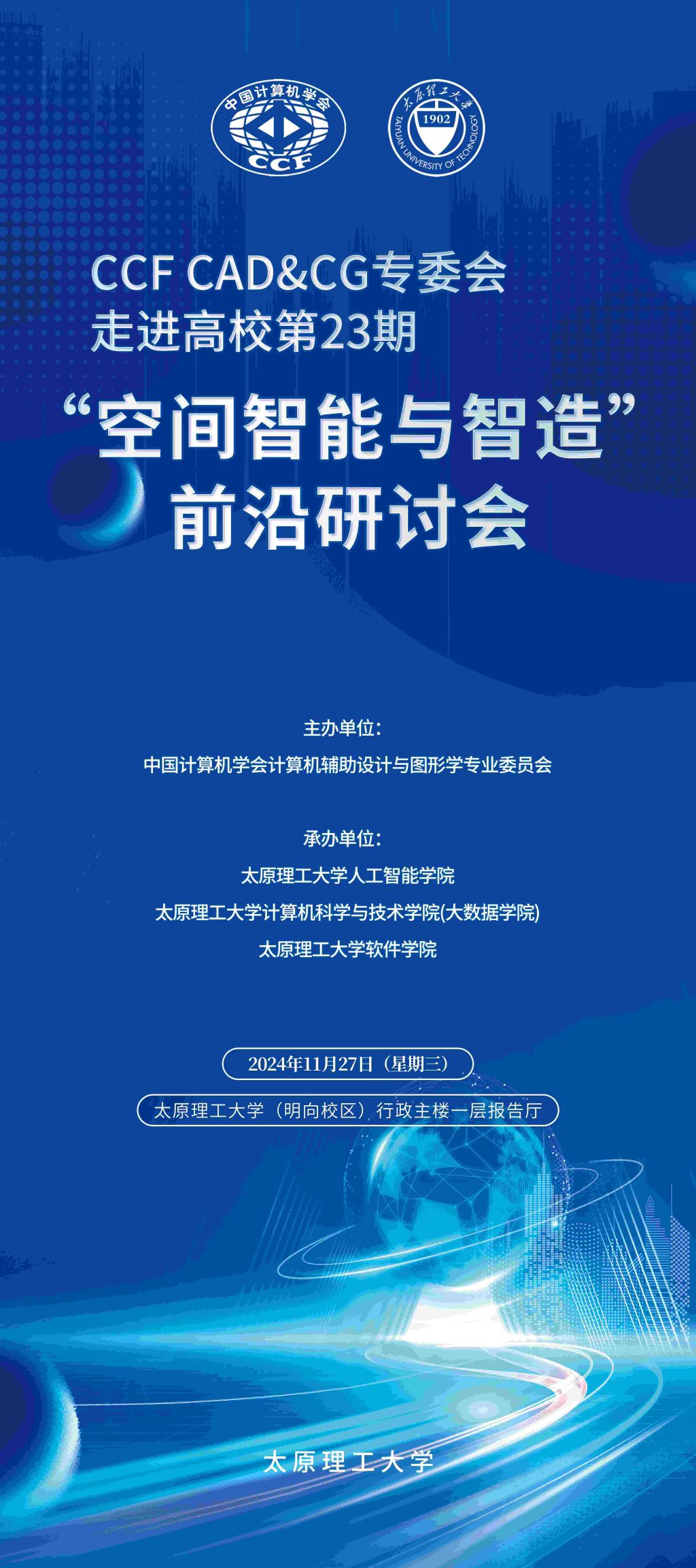 CCF CAD&CG走进高校第23期kaiyun体育官方网站入口登录站活动,将于2024年11月27日在kaiyun体育官方网站入口登录举行。本次活动邀请了5位相关领域的专家学者,以“空间智能与智造”为主题进行学术研讨,欢迎感兴趣的同仁和同学线下参与交流与分享!