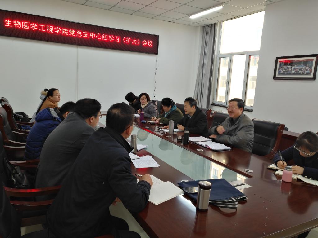 12月4日上午,生物医学工程学院党总支中心组学习(扩大)会议在学院楼408会议室召开。学院党政领导、三办主任、各系、中心、研究所负责人及各党支部书记参加了会议,会议由院党总支书记韩志军主持。