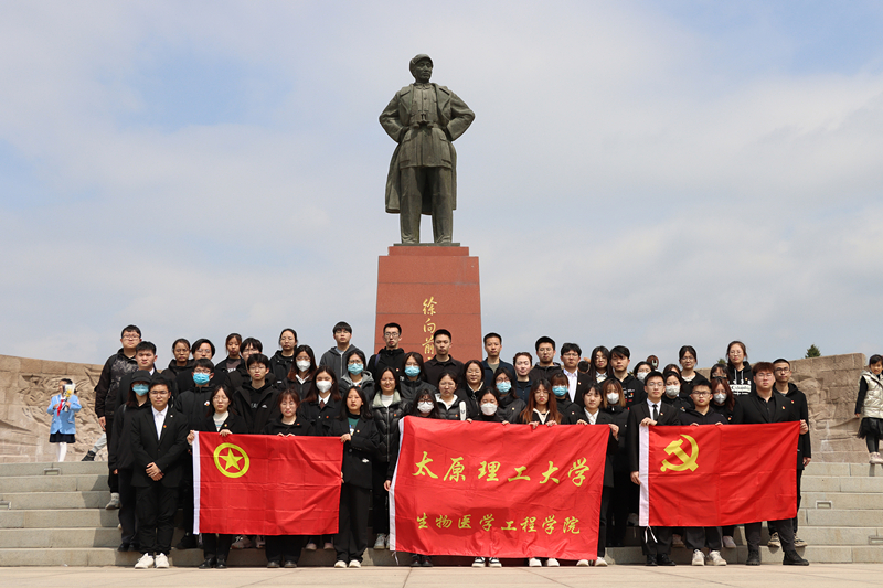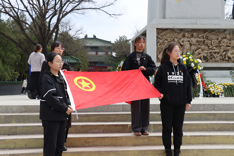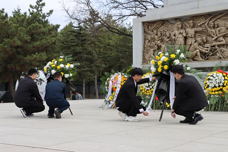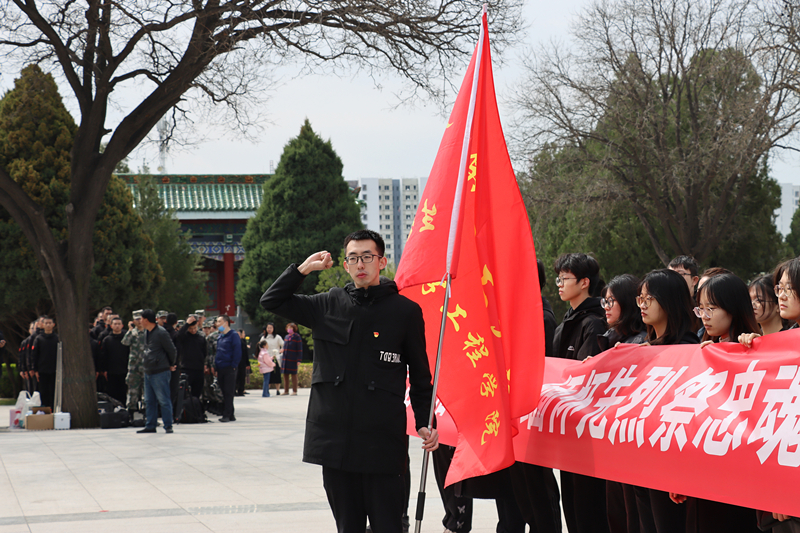 青山肃立,绿水长歌;巍巍丰碑,英烈不朽。怀着崇敬的心情,团学骨干们来到了牛驼寨革命烈士陵园——1910名为解放太原而牺牲的革命烈士的长眠之所。在烈士纪念碑前,团学骨干们齐唱国歌,并向英烈鞠躬默哀,表达对革命先烈的无限哀思;由退伍军人作为学生代表敬献花篮,致敬英雄;团员青年重温入团誓词,以铮铮誓言表达永葆初心、不辱使命的信念和决心。