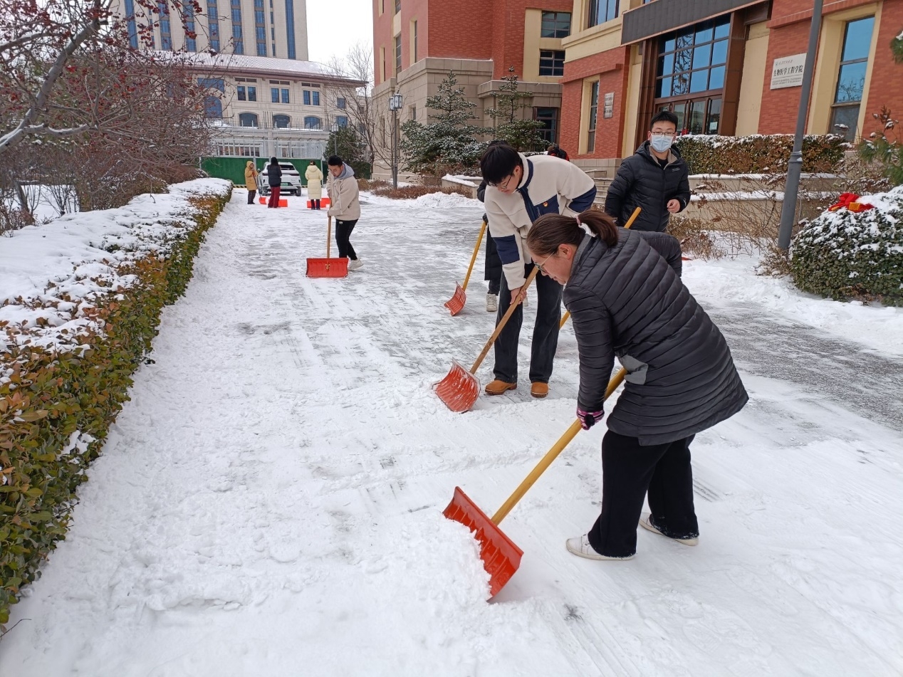 院党委副书记李昱霞、辅导员史志程同生医学子们一起扫雪除冰、通力协作,推、铲、扬、堆,各种方法齐上阵,热闹与忙碌驱散了深冬的凛冽与严寒,为全校师生开辟一条条洋溢着暖暖温情的方便之路。