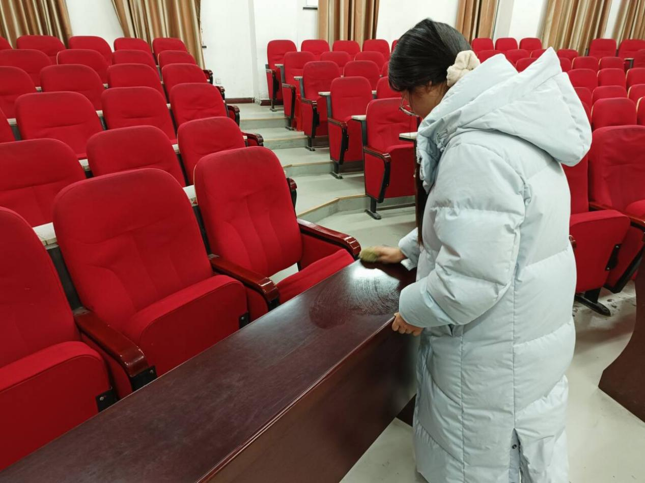 志愿者们分工明确,各司其职,认真清扫报告厅的各个角落。在大家的共同努力下,报告厅内的环境得到了很大改善。整洁的地面、干净的墙面和一尘不染的设施,让人感觉仿佛进入了一个全新的空间。这样的环境不仅有助于提升会议体验,也为参会者提供了一个舒适的场所。