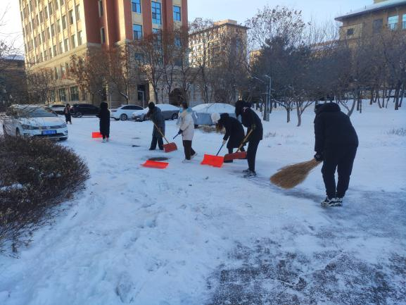 在寒风凛冽的天气中,同志们热情高涨,积极参与。他们领取清扫工具后,有序展开清理道路积雪的工作。尽管车辆碾压、行人踩踏、气温骤降给积雪清理带来不小的清扫难度,但是大家不畏严寒,团结协作,成为校园里一道亮丽的风景线。