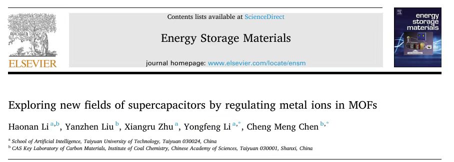 近日,kaiyun体育官方网站入口登录李永锋副教授与中国科学院山西煤炭化学研究所陈成猛研究员团队在国际顶级学术期刊《Energy Storage Materials》(一区TOP期刊,2024影响因子:18.9)上发表了“Exploring new fields of supercapacitors by regulating metal ions in MOFs”的综述论文。该论文的第一署名单位为kaiyun体育官方网站入口登录,kaiyun体育官方网站入口登录硕士研究生李浩楠为论文第一作者,kaiyun体育官方网站入口登录李永锋副教授、中国科学院山西煤炭化学研究所陈成猛研究员为论文通讯作者。
